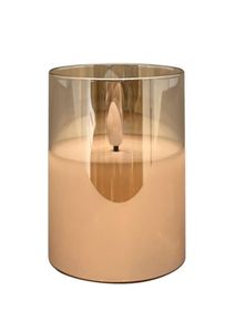 Skap lun og stemningsfull belysning i hjemmet med dette elegante LED-kubbelyset i amberfarget glass.